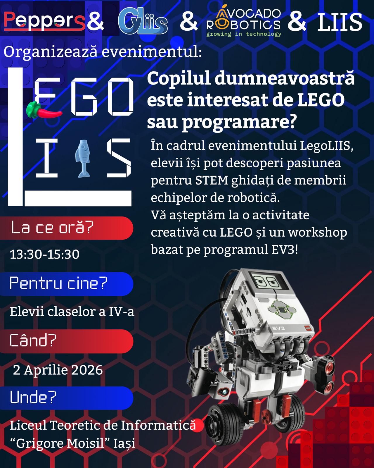 🧱 Sunteți interesați să vă înscrieți copilul la Liceul Teoretic de Informatică “Grigore Moisil” din Iași? În cadrul evenimentului LegoLIIS, noi oferim acestuia oportunitatea de a participa la un tur al liceului alături de un atelier teoretic și practic, și își va putea personaliza propria diplomă de participare!